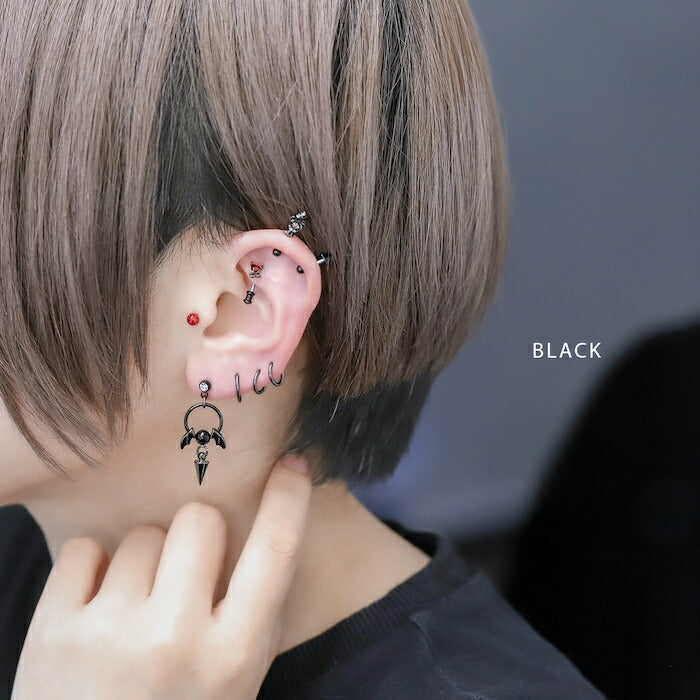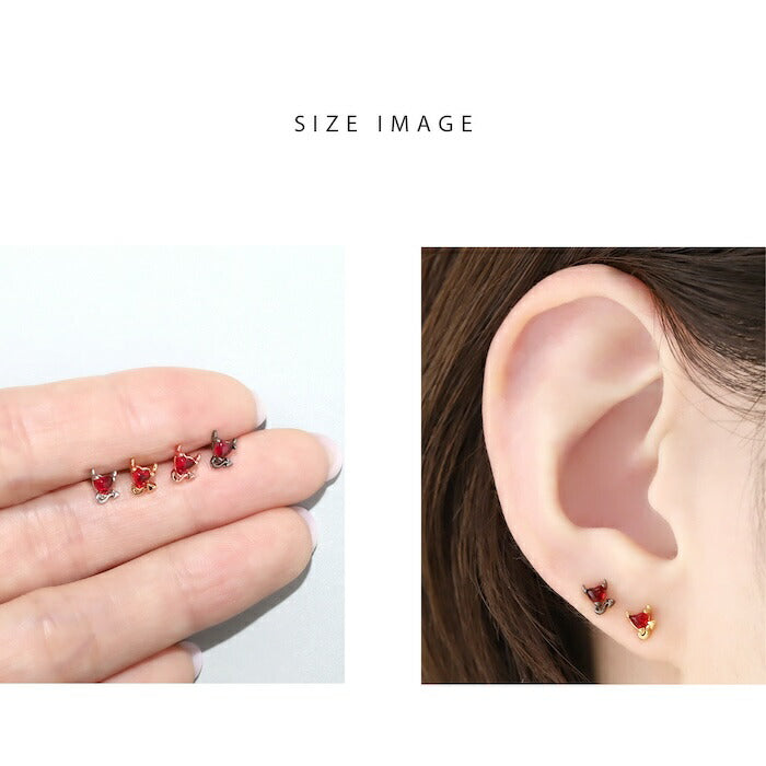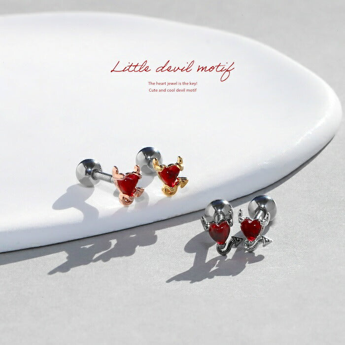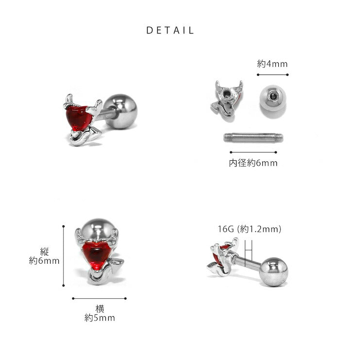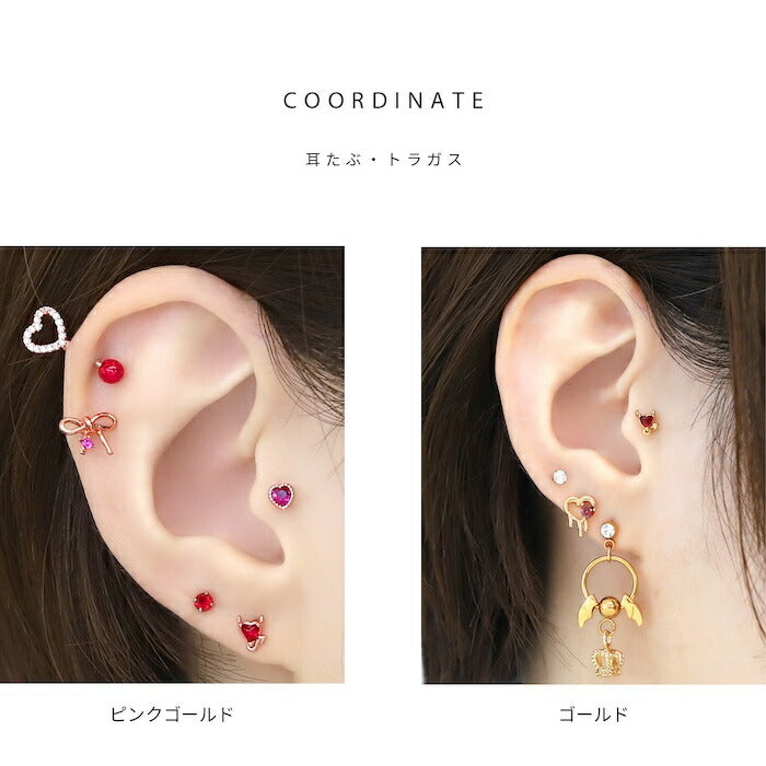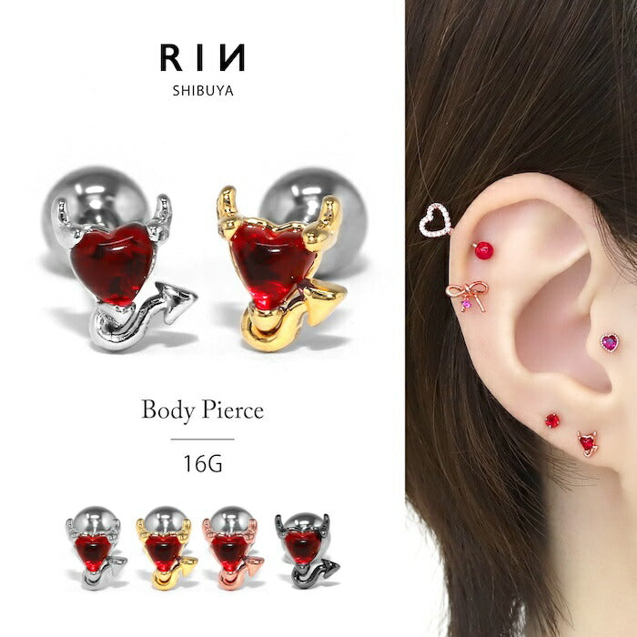 t951-69 軟骨ピアス 16G ボディピアス サージカルステンレス つけっぱなし 金属アレルギー 金属アレルギー対応 悪魔 小悪魔 デビル ハート シルバー ゴールド ピンクゴールド ブラック ピアス カスタマイズ トラガスピアス 片耳用