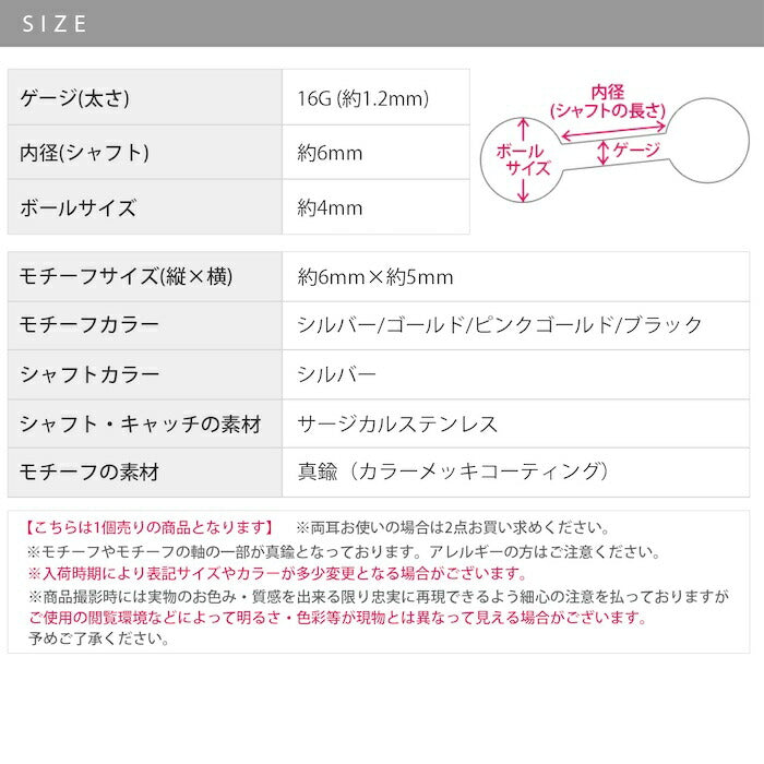 ※こちらの商品の一部カラーは、カラーのメッキコーティングを施しています。体質によって着けたままにされますと、メッキコーティングが剥がれる可能性がございます。