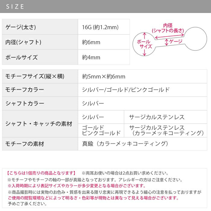 ゴールド ピンクゴールド:サージカルステンレス(カラーメッキコーティング)