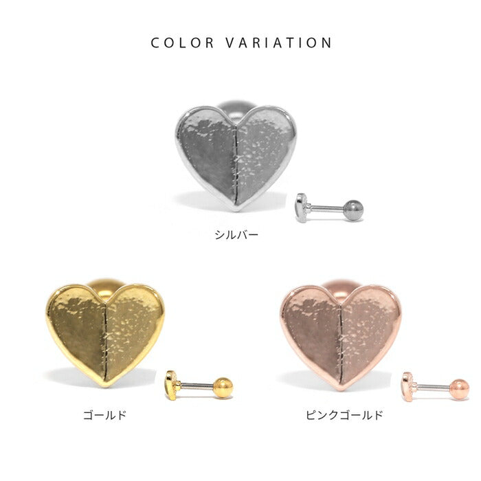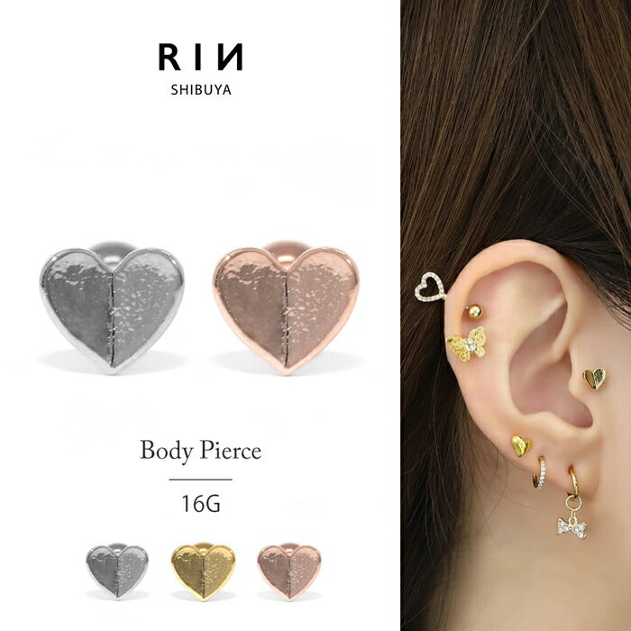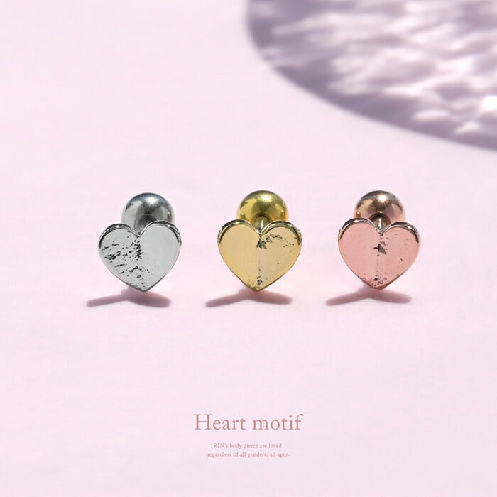 t9972-001 ボディピアス 軟骨ピアス 16G ハート はーと 金属アレルギー 金属アレルギー対応 ストレートバーベル サージカルステンレス つけっぱなし シルバー ゴールド ピンクゴールド トラガス ヘリックス かわいい 耳たぶ 片耳用