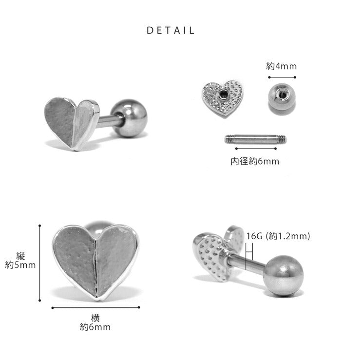 16g ハート ストレートバーベル ステンレスピアス 軟骨1448 t9972-001