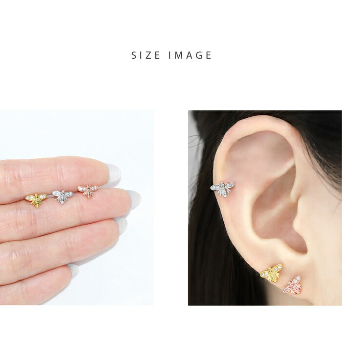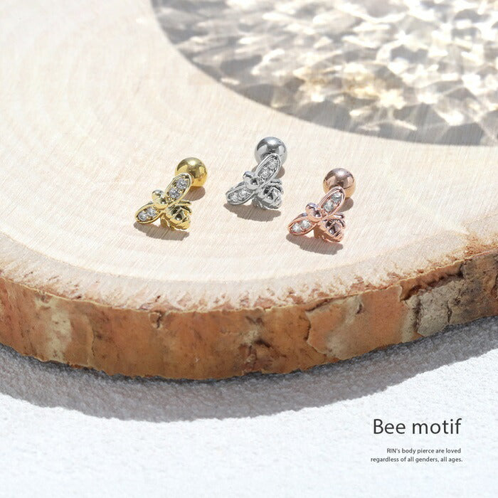 t9972-003 ボディピアス 軟骨ピアス 16G 金属アレルギー対応 金属アレルギー サージカルステンレス つけっぱなし ハチ ストレートバーベル レディース 女性 大人 仕事 オフィス きれい かわいい おしゃれ シンプル 小さめ シルバー ゴールド ピンクゴールド 普段使い