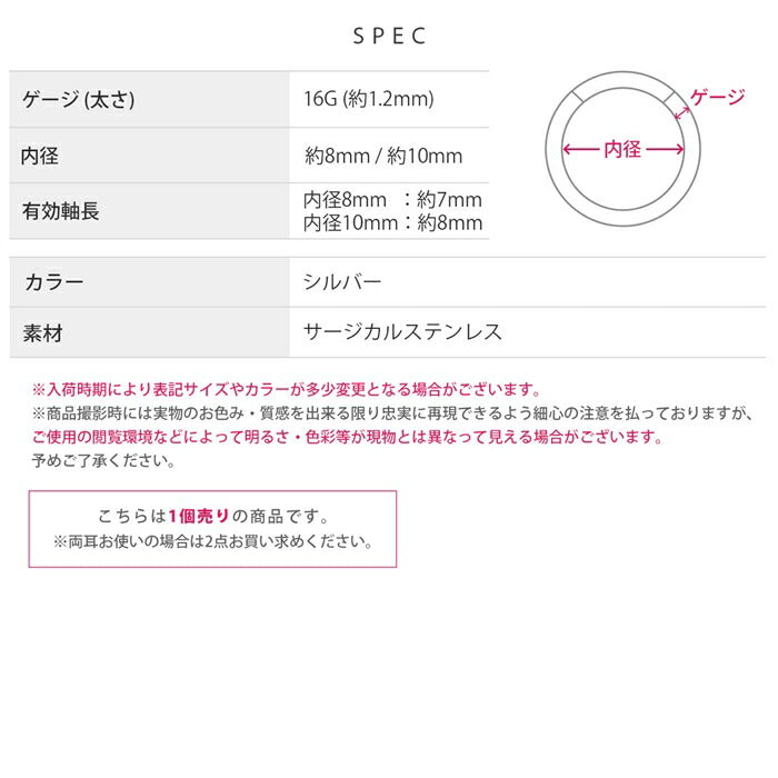 16G コイル巻き シルバー ステンレス ワンタッチ セグメントリング 【片耳用】 ステンレスピアス0133 t9972-008