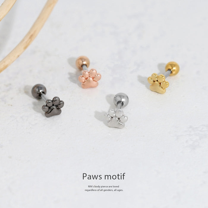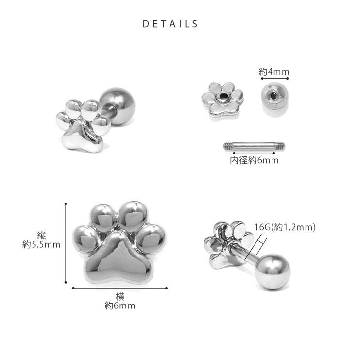 t9972-011 軟骨ピアス かわいい 16G ボディピアス 肉球 にくきゅう 犬 猫 アニマル ストレートバーベル ピアス サージカルステンレス 片耳用